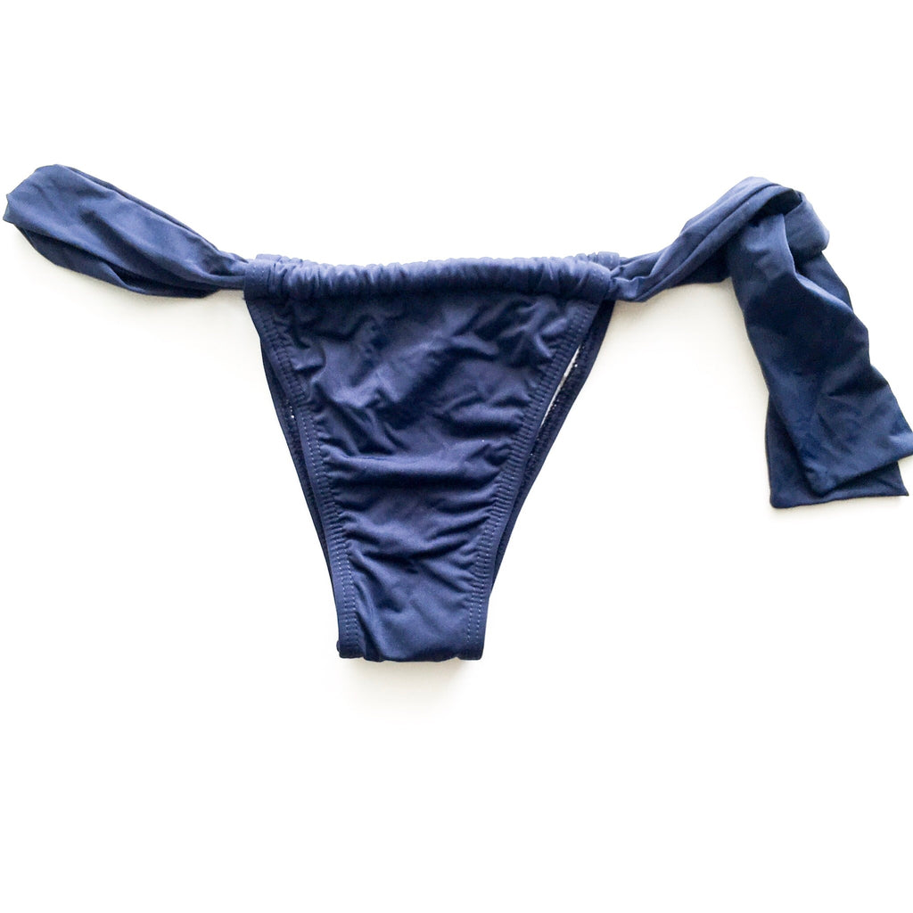 The famous Brazilian bikini bottom, renowned for its cheeky fit enhancing the curves of the body. Exuding glamour and sophistication in a classic navy colouring. Featuring one side tie, this style is ideal for bronzing in the sun on hot summer days.